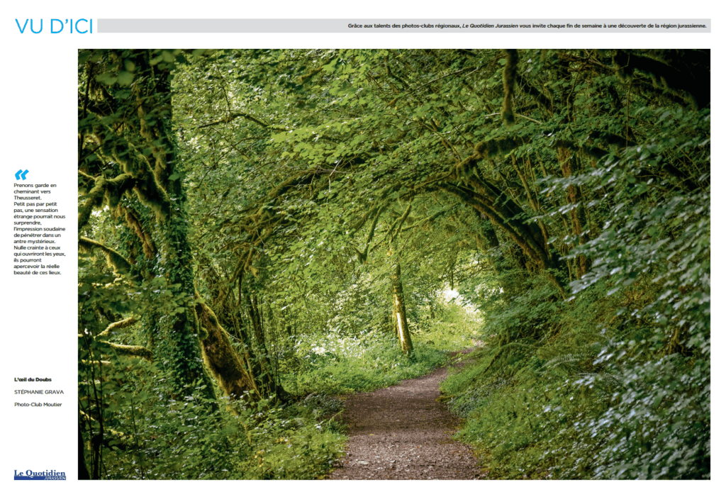 Depuis le samedi 8 mai 2021, le Quotidien Jurassien publie en toute dernière page de l’édition du samedi, une sélection d’images de notre région jurassienne dans la rubrique « Vu d’ici ». Ces images sont un travail mené par les membres des 4 photoclubs jurassiens, Courroux, Franches-Montagnes, Haute-Sorne et Moutier. Vous pouvez découvrir chaque semaine sur notre site internet la publication du samedi précédent. Le PCM remercie les 2 initiants de ce projet, Serge Voisard et Michel Cattin. Belle découverte à toutes et tous !