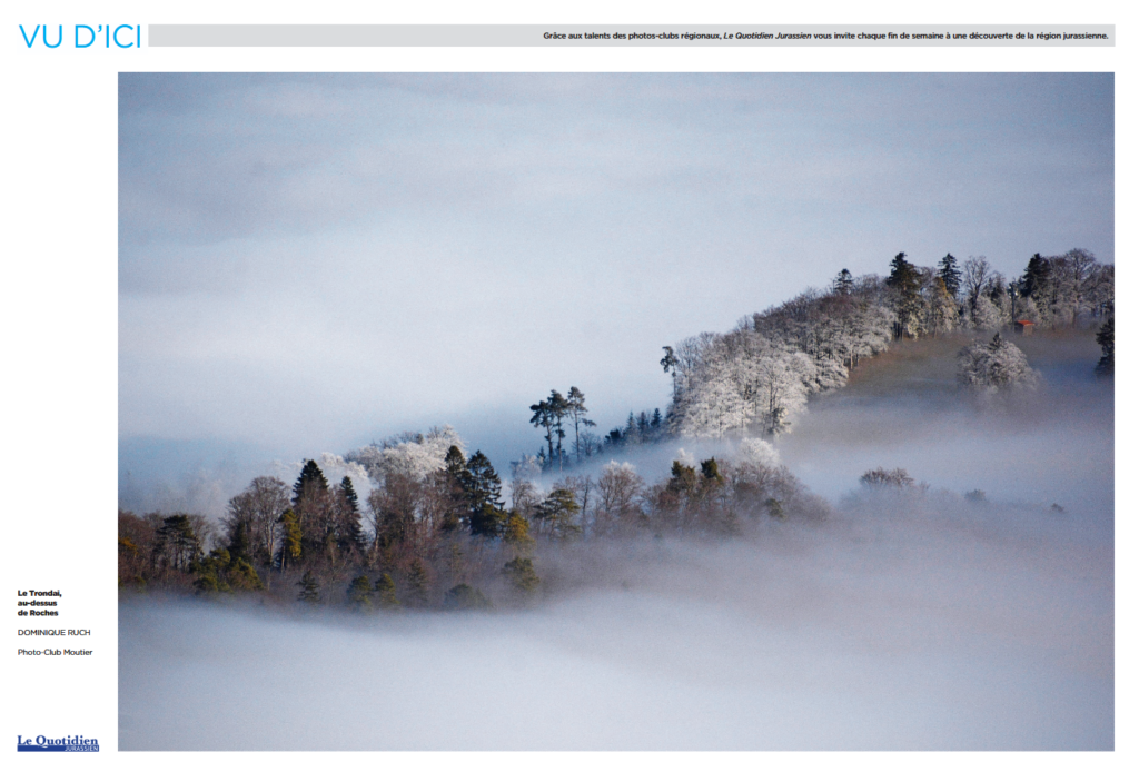 Depuis le samedi 8 mai 2021, le Quotidien Jurassien publie en toute dernière page de l’édition du samedi, une sélection d’images de notre région jurassienne dans la rubrique « Vu d’ici ». Ces images sont un travail mené par les membres des 4 photoclubs jurassiens, Courroux, Franches-Montagnes, Haute-Sorne et Moutier. Vous pouvez découvrir chaque semaine sur notre site internet la publication du samedi précédent. Le PCM remercie les 2 initiants de ce projet, Serge Voisard et Michel Cattin. Belle découverte à toutes et tous !